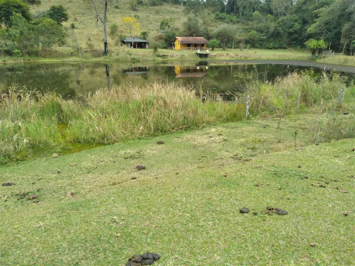 Área com 65 hectares, com uma casinha e um lago.
